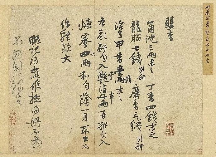 黄庭坚《制婴香方帖》