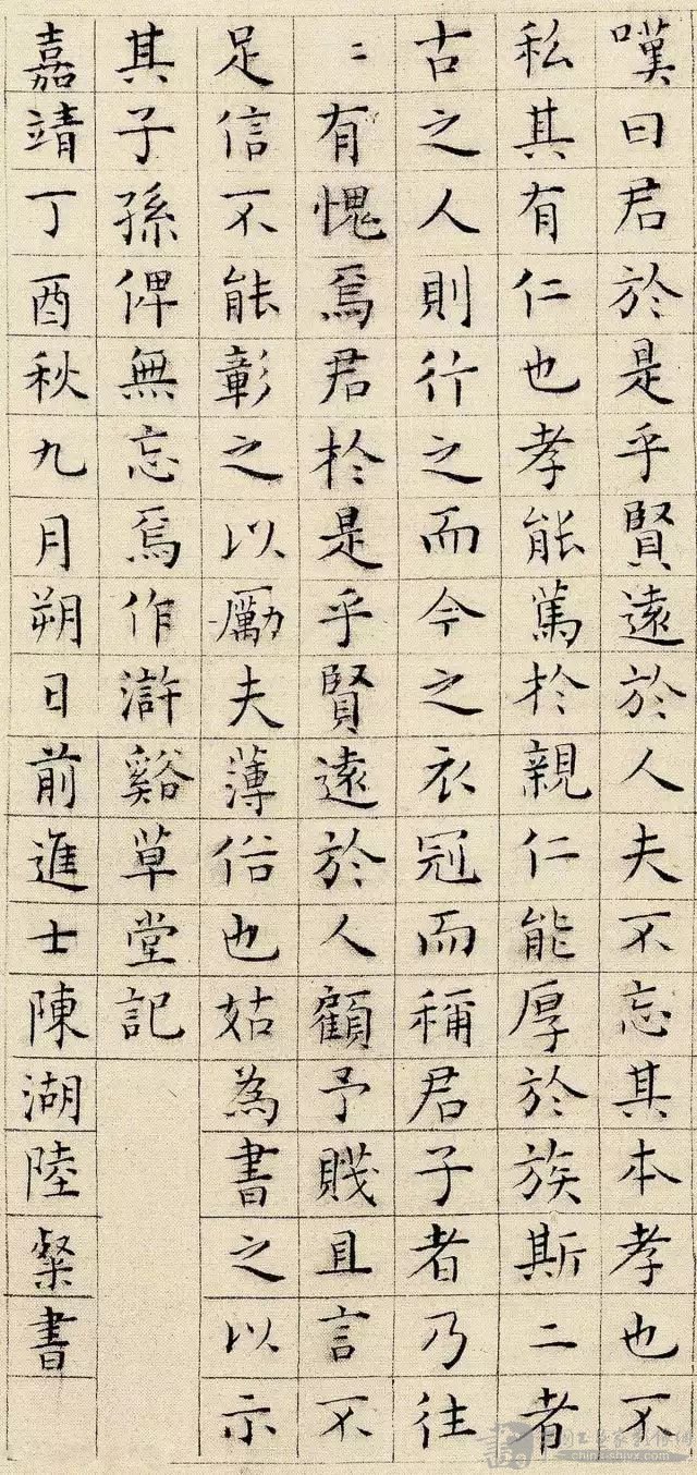 明代陆粲小楷书法欣赏《浒溪草堂记》绢本,嘉靖丁酉(1537年)秋九月书,辽宁省博物馆藏。