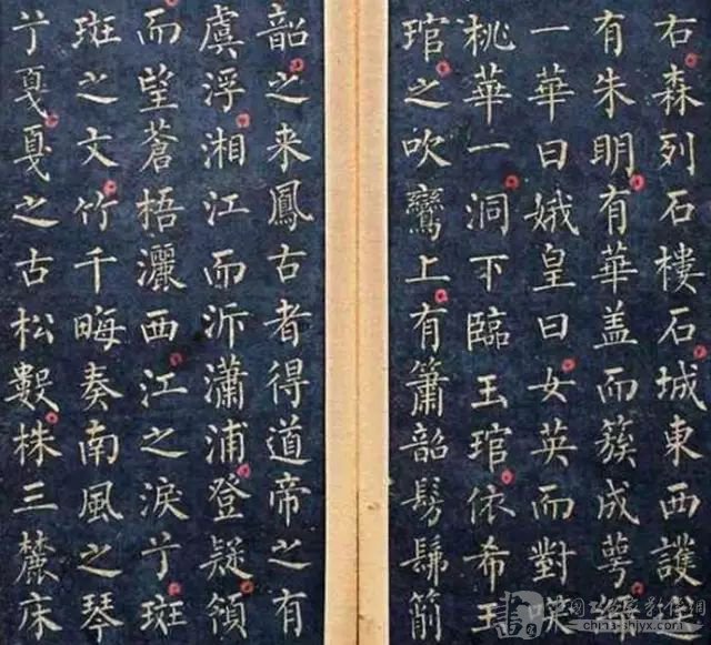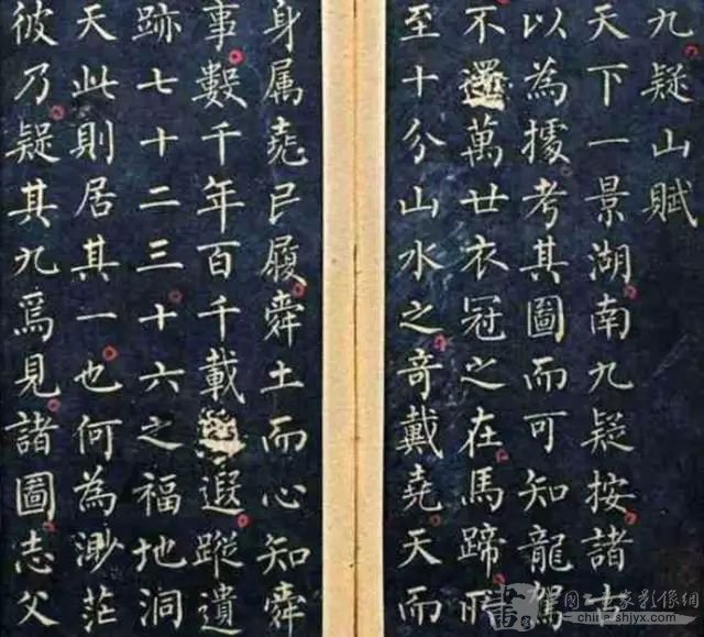《九疑山赋》由邵建和镌刻,刀法自然,非常精微。柳公权书写的很多碑,都是邵建和镌刻的。《九疑山赋》最可贵的是柳公权在其作品最鼎盛时期所书!