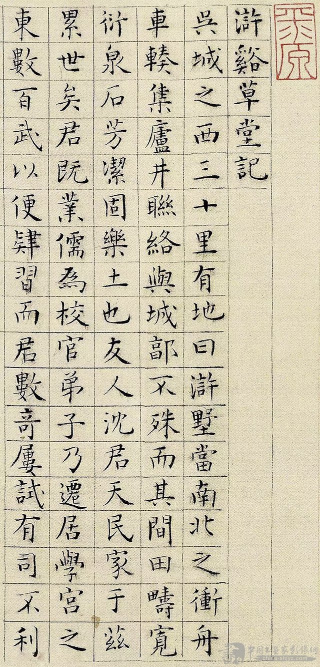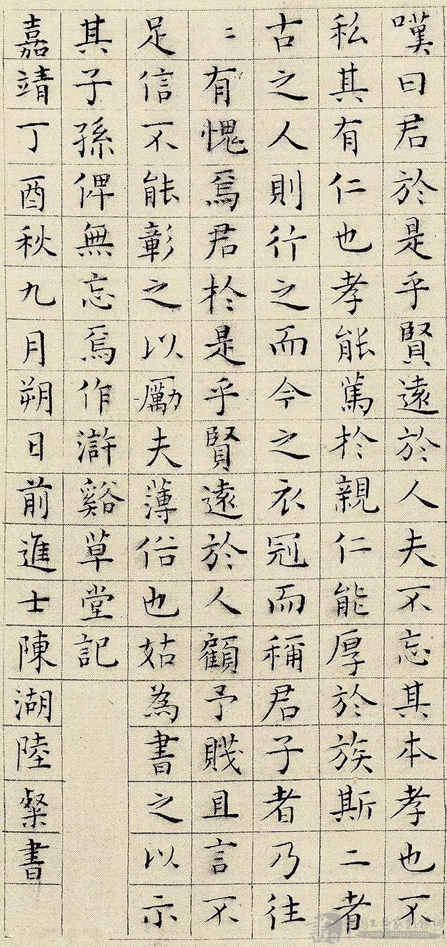 明代陆粲小楷书法欣赏《浒溪草堂记》绢本,嘉靖丁酉(1537年)秋九月书,辽宁省博物馆藏。
